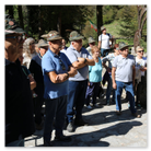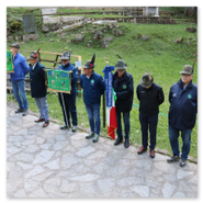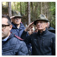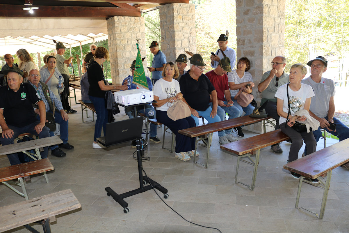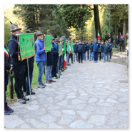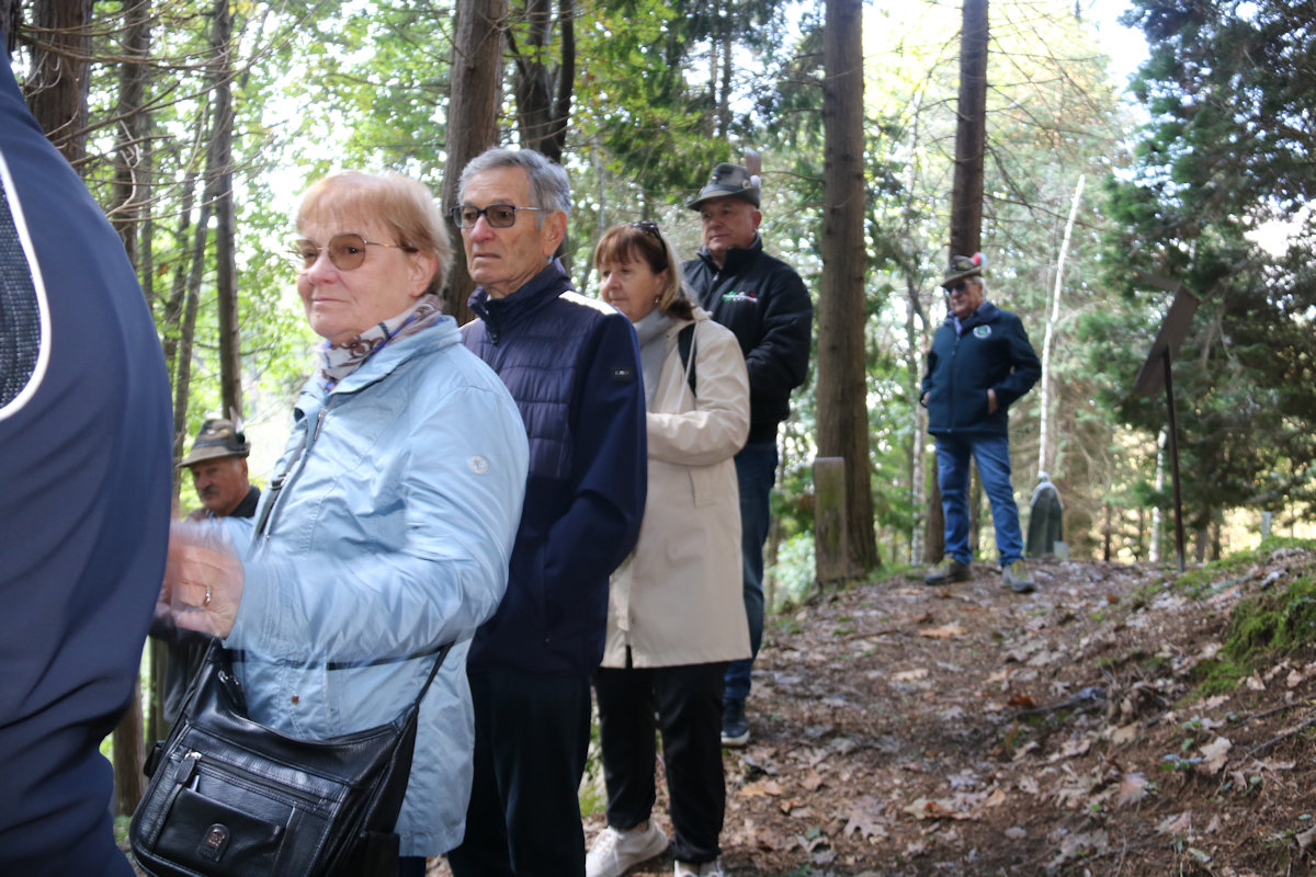 Sono quindi giunti al Bosco con tre pullman e alcuni altri veicoli, circa 130 alunni accompagnati da una decina di docenti e una trentina di alpini con Sindaco, Capigruppo con i Gagliardetti e la sussistenza al seguito, oltre alle rappresentanze di altre Associazioni d'Arma.
