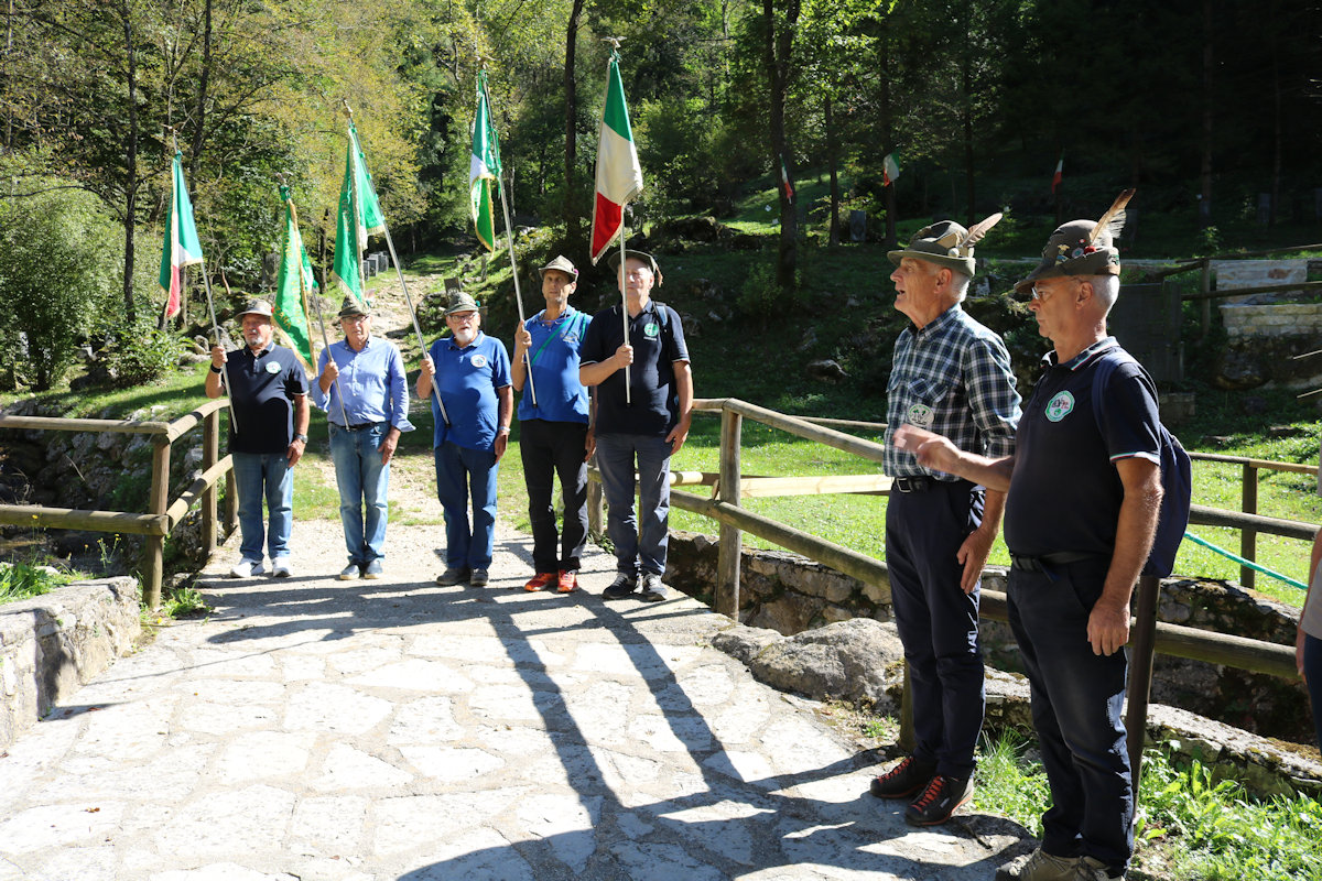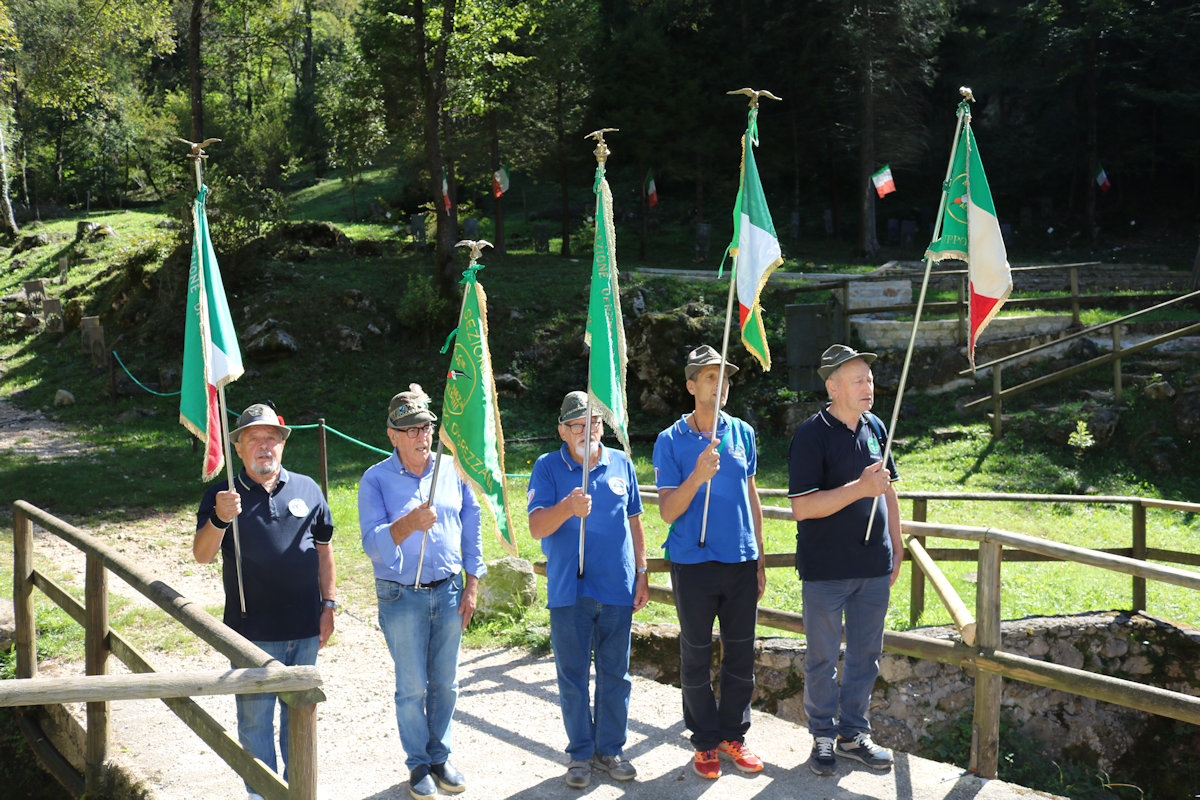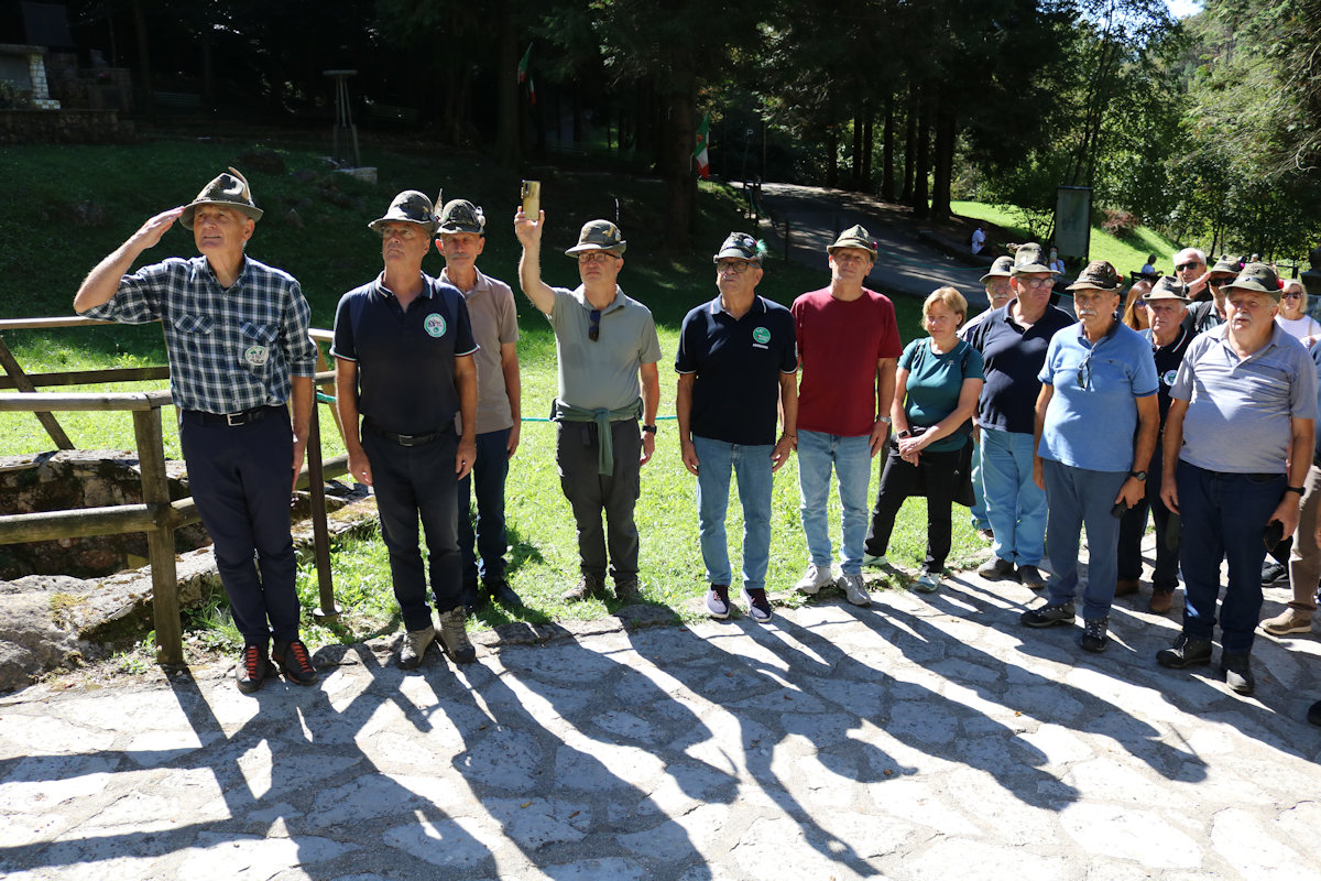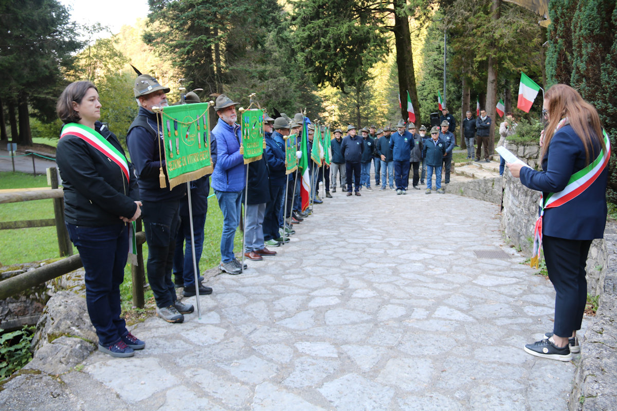 I presenti si sono radunati di fronte al monumento delle Penne Mozze per l'Alzabandiera al quale sono seguiti i saluti i della rappresentante del Comune di Cison di Valmarino Cristina Munno e della Vice Sindaca del Comune di Revine Lago Elisa Carpenè; il Presidente dell'As.Pe.M. Varinnio Milan ha poi portato il suo benvenuto a tutti gli intervenuti ricordando cosa rappresenti il Bosco delle Penne Mozze per gli Alpini, luogo della memoria dove si ricordano tutti gli alpini trevigiani, ma ormai non solo, caduti nelle guerre e dopo di esse per cause di servizio.