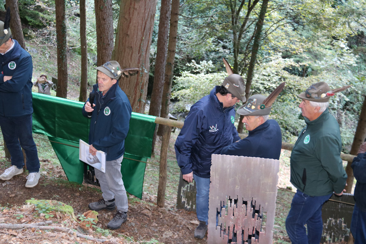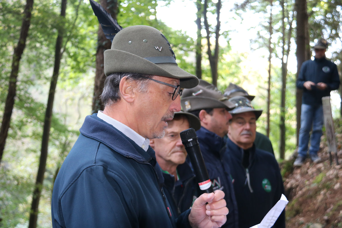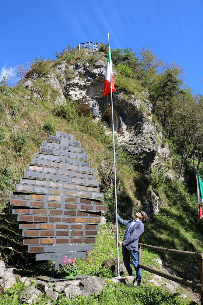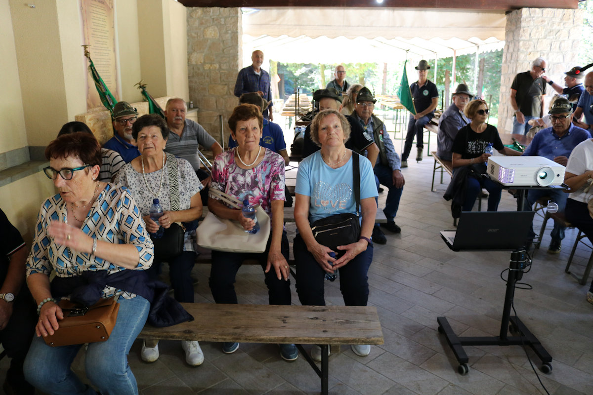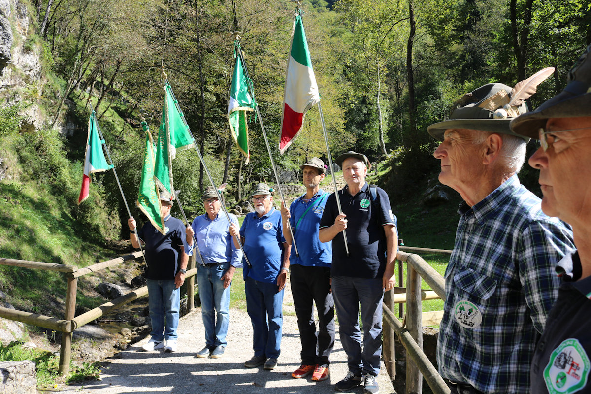 I presenti si sono radunati di fronte al monumento delle Penne Mozze per l'Alzabandiera al quale sono seguiti i saluti i della rappresentante del Comune di Cison di Valmarino Cristina Munno e della Vice Sindaca del Comune di Revine Lago Elisa Carpenè; il Presidente dell'As.Pe.M. Varinnio Milan ha poi portato il suo benvenuto a tutti gli intervenuti ricordando cosa rappresenti il Bosco delle Penne Mozze per gli Alpini, luogo della memoria dove si ricordano tutti gli alpini trevigiani, ma ormai non solo, caduti nelle guerre e dopo di esse per cause di servizio.