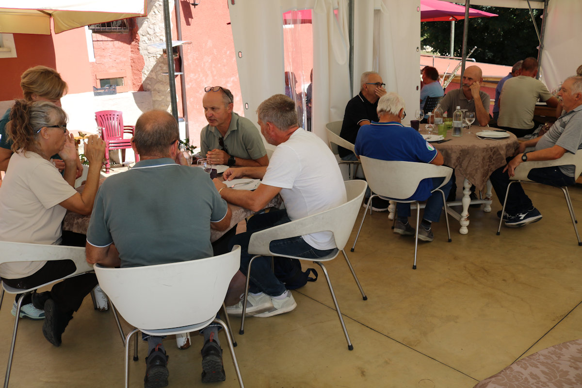 La comitiva si è infine trasferita al vicino ristorante Alla Grotta per il pranzo, durante il quale è avvenuto anche lo scambio di doni tra i Gruppi e verso l'As.Pe.M. Dopo i saluti la visita è proseguita verso alcuni luoghi storici del Montello e Nervesa.