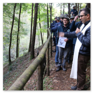 La visita si è svolta, come tradizione, con la passeggiata lungo la Via dell'Acqua e, arrivati al Bosco, accolti dal saluto del Presidente dell'As.Pe.M. Varinnio Milan seguito dalla proiezione di alcune immagini sulla storia del Memoriale illustrate dal Consigliere Andrea Scandiuzzi; il gruppo si è poi portato davanti al Monumento per l'Alzabandiera accompagnato dal canto dell'Inno nazionale; ancora alcune informazioni da parte del Presidente per poi proseguire con la vera e propria visita, un po' più breve della tradizione a causa dei poco tempo a disposizione.