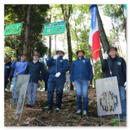 Dopi i saluti si è passati alla presentazione della storia del Bosco delle Penne Mozze con la visione di alcune diapositive accompagnate dal commento del Consigliere dell'As.Pe.M. Andrea Scandiuzzi e al termine, grazie anche ad una pausa della pioggia, ci si è portati di fronte al Monumento delle Penne Mozze per l'Alzabandiera e gli Onori ai Caduti.